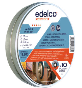 | 115 x 1.0 x 22.23 | 4 1/2 x 1/25 x 7/8 | 13300 | 1 tin of 10 discs | ED A 60 R 115 P | 4255705106182 | |
