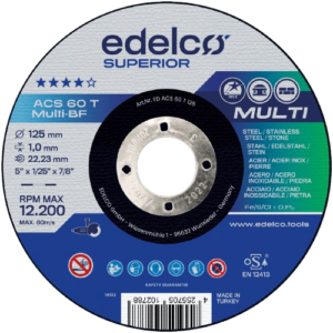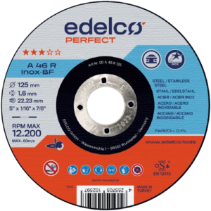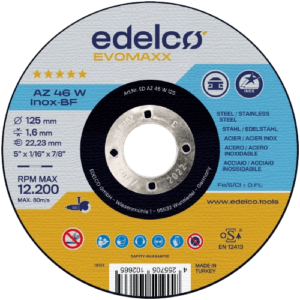 Edelco cutting discs are manufactured on modern production lines in keeping with the latest safety standards according to EN 12 413 and oSa requirements.